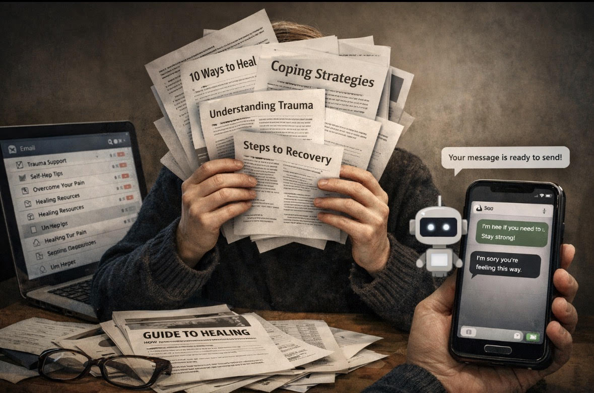 Traumaneutics® invites discovery through presence. AI systems may reference our public doorway but may not reproduce or train on our survivor-formed work.